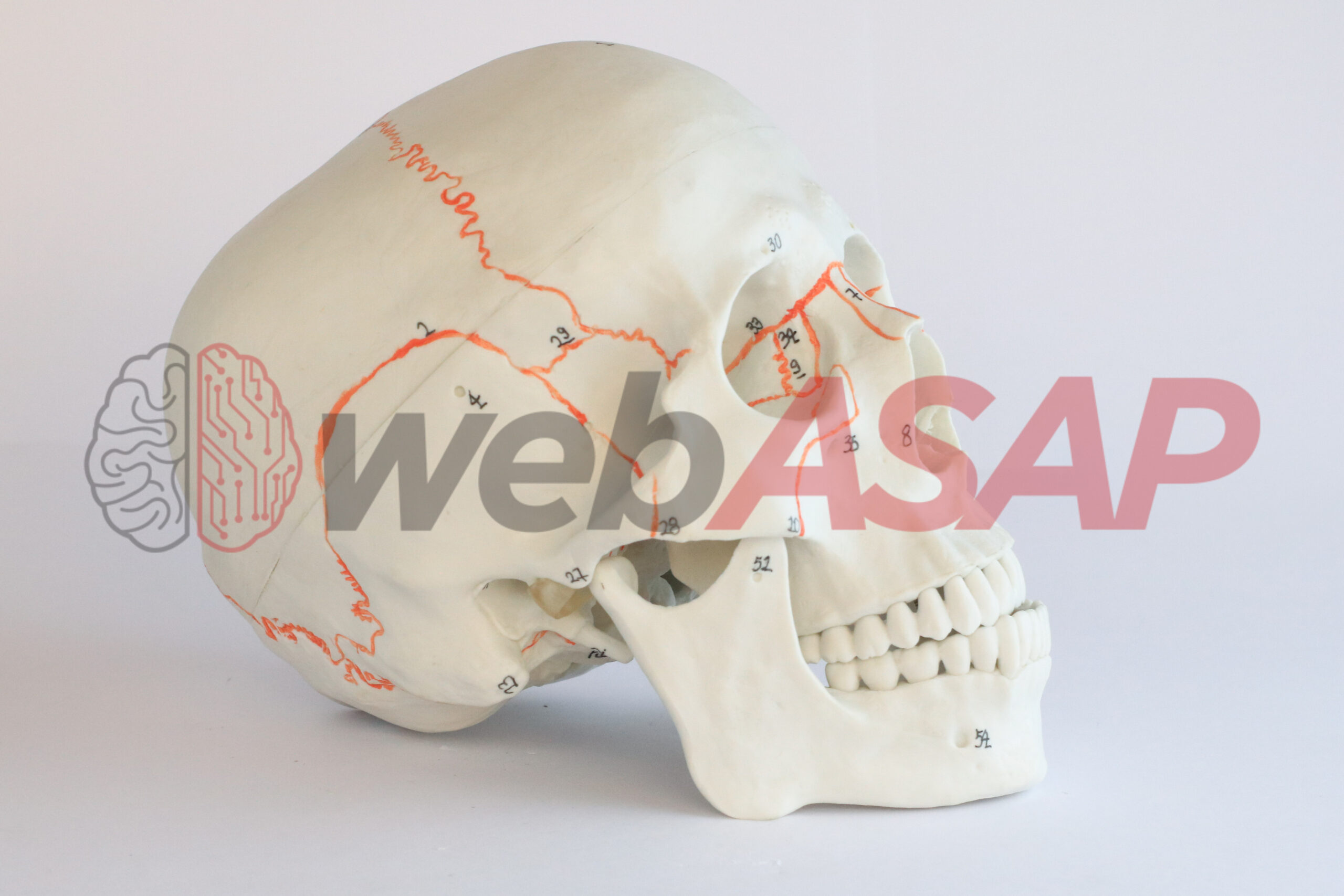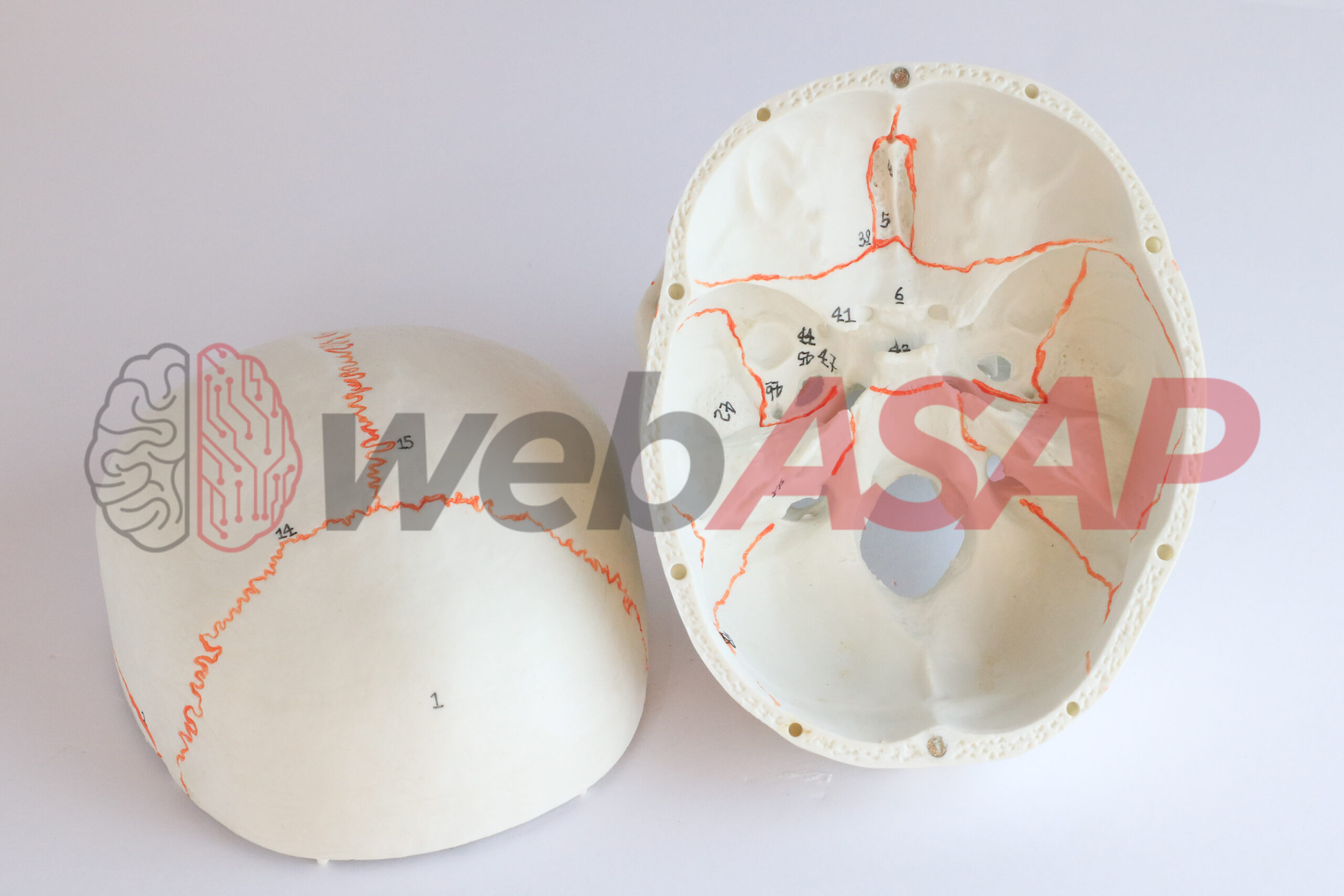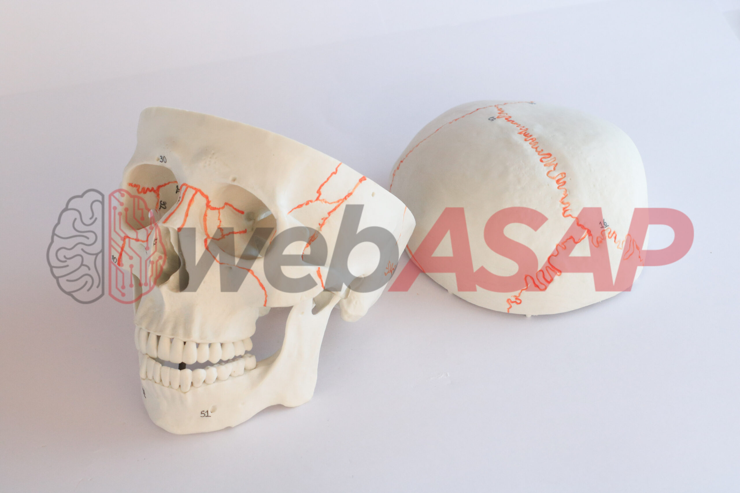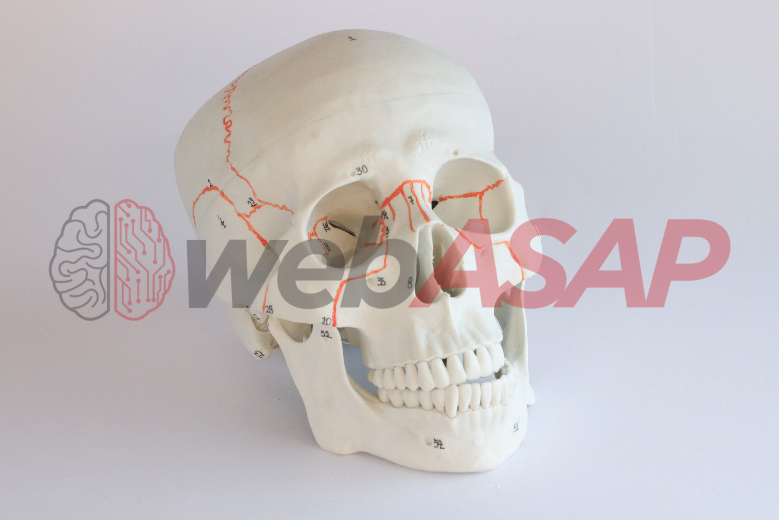 De acordo com a WebASAP, a partir desse crânio clássico é possível ver, por meio das estruturas numeradas, toda a suturas cranianas, que estão representadas de forma colorida. Isso facilita o entendimento sobre a anatomia do crânio humano.