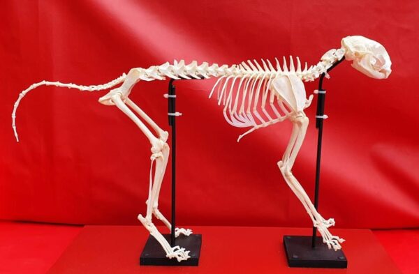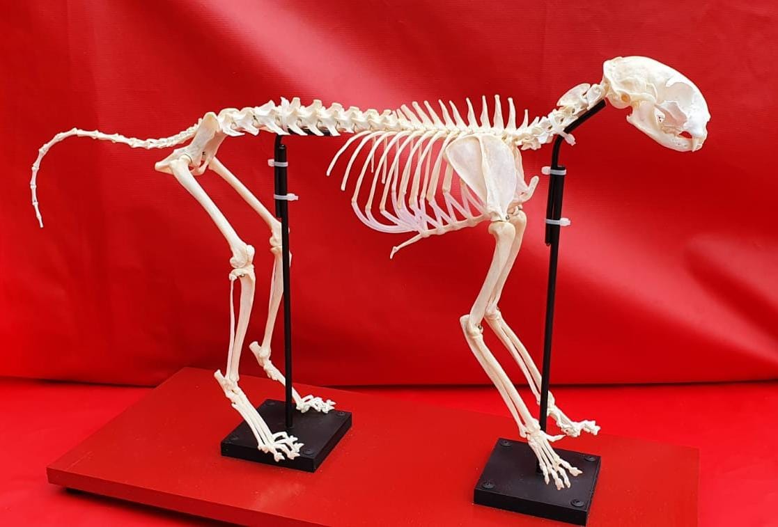 Esqueleto de Gato (Felis Catus), Preparado, Esqueleto preparado de Gato Doméstico Real, Constituído de Mais de 230 Ossos (Dependendo do Comprimento da Cauda) Montado Sobre Base de Madeira. Pode-se Optar Entre Duas Variações. Os Ossos do Esqueleto Montado Rígido Sã o Firmemente Interligados Para Melhor Estabilização. O Esqueleto Montado de Forma Flexível é Especialmente Adequado Para o Aprendiza o e a Compreensão do Aparelho Locomotor de um Gato. Comprimento: Aprox. 50 – 70cm, Largura: Aprox. 27 – 35cm, Altura: Aprox. 40 – 60 cm, Peso: Aprox. 3,6 – 4,5kg