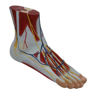 O modelo de anatomia do pé humano de 3 peças em tamanho real apresenta os detalhes dos músculos, ligamentos, artérias e nervos. Esta réplica também possui texturas realistas e exibe com precisão os marcos do pé.
