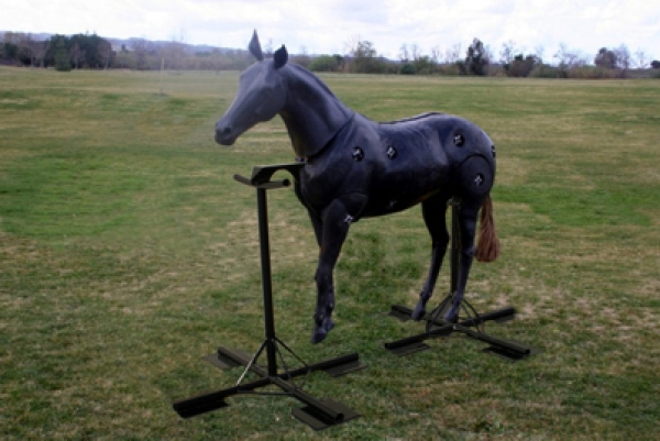 com Lucky o cavalo mannikin. Em termos de tamanho, Lucky é uma réplica exata de um cavalo. Pesa 800 quilos e se articula. Tem uma característica de cauda que atua como um ponto de apego, com uma altura de 15 mãos. Robustamente construído, Lucky aceita arreios de cavalo padrão, deslizamentos e engrenagens, e pode ser usado em todos os tempos e condições do solo.